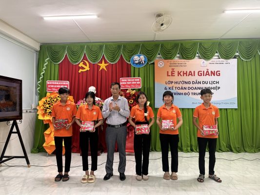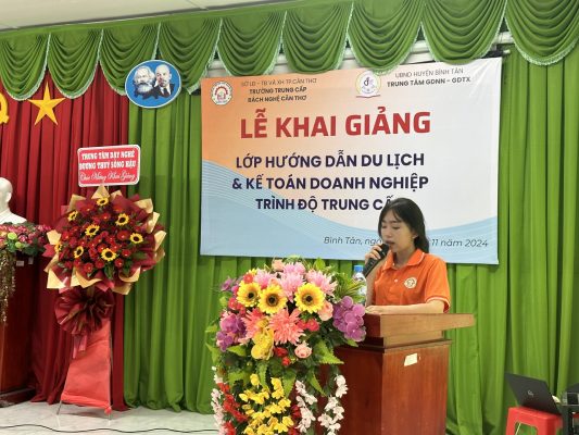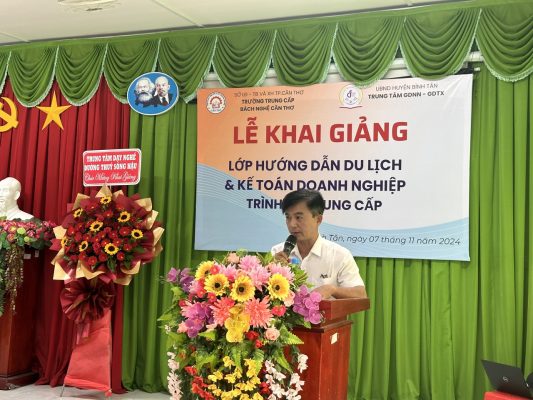 Được sự thống nhất và cho phép của cơ quan quản lý trực tiếp. Trường Trung cấp Bách Nghệ Cần Thơ phối hợp với Trung tâm Giáo dục nghề nghiệp – Giáo dục thường xuyên huyện Bình Tân – Vĩnh Long tổ chức khai giảng lớp Trung cấp nghề Hướng dẫn du lịch và Kế toán doanh nghiệp khóa 2024 – 2026 tại Trung tâm (ngày 07/11/2024).