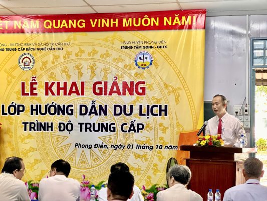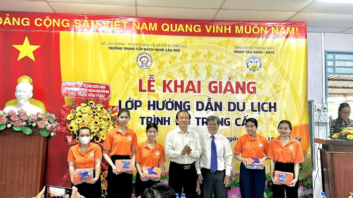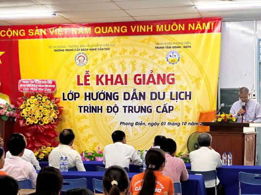 Chiều ngày 01/10/2024, được sự thống nhất và cho phép của cơ quan quản lý trực tiếp. Trường Trung cấp Bách Nghệ Cần Thơ phối hợp với Trung tâm GDNN – GDTX huyện Phong Điền, thành phố Cần Thơ. Tổ chức khai giảng lớp Trung cấp nghề Hướng dẫn du lịch khóa 2024 – 2026 tại Trung tâm GDNN – GDTX huyện Phong Điền.
