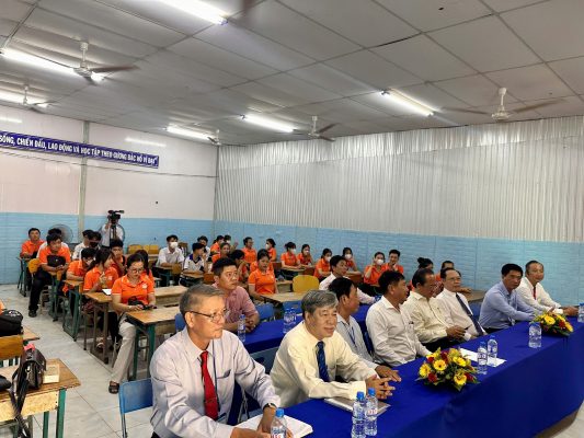 Nhân dịp này, đơn vị đào tạo có 10 phần quà tặng cho các em có hoàn cảnh khó khăn và áo đồng phục cho cả lớp. Lớp này dự kiến sẽ tốt nghiệp cuối năm 2026, để các em chuẩn bị cho kỳ thi tốt nghiệp THPT năm 2027.